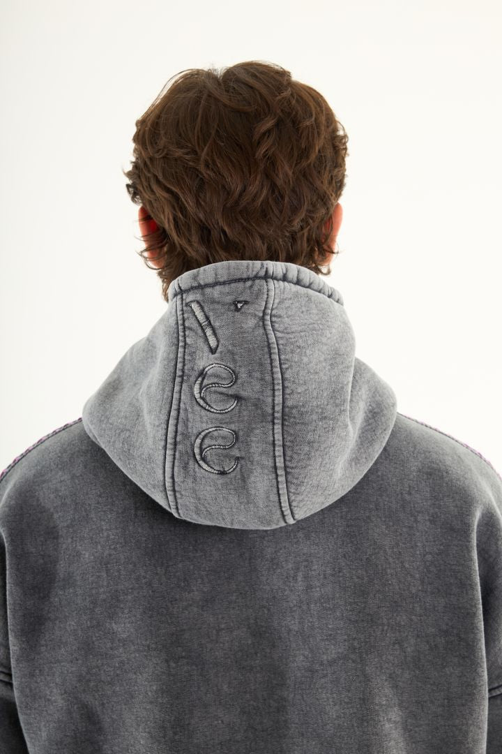 This stylish, oversized full set features a unique gray acid-washed finish, giving it a laid-back, vintage vibe. Crafted from 100% organic cotton, it's designed for ultimate comfort and breathability, making it a perfect blend of sustainability and style. The set is detailed with handmade embroidery on the pocket and neck, showcasing artisanal craftsmanship. The rubber label on the pants adds a modern, streetwear-inspired touch.